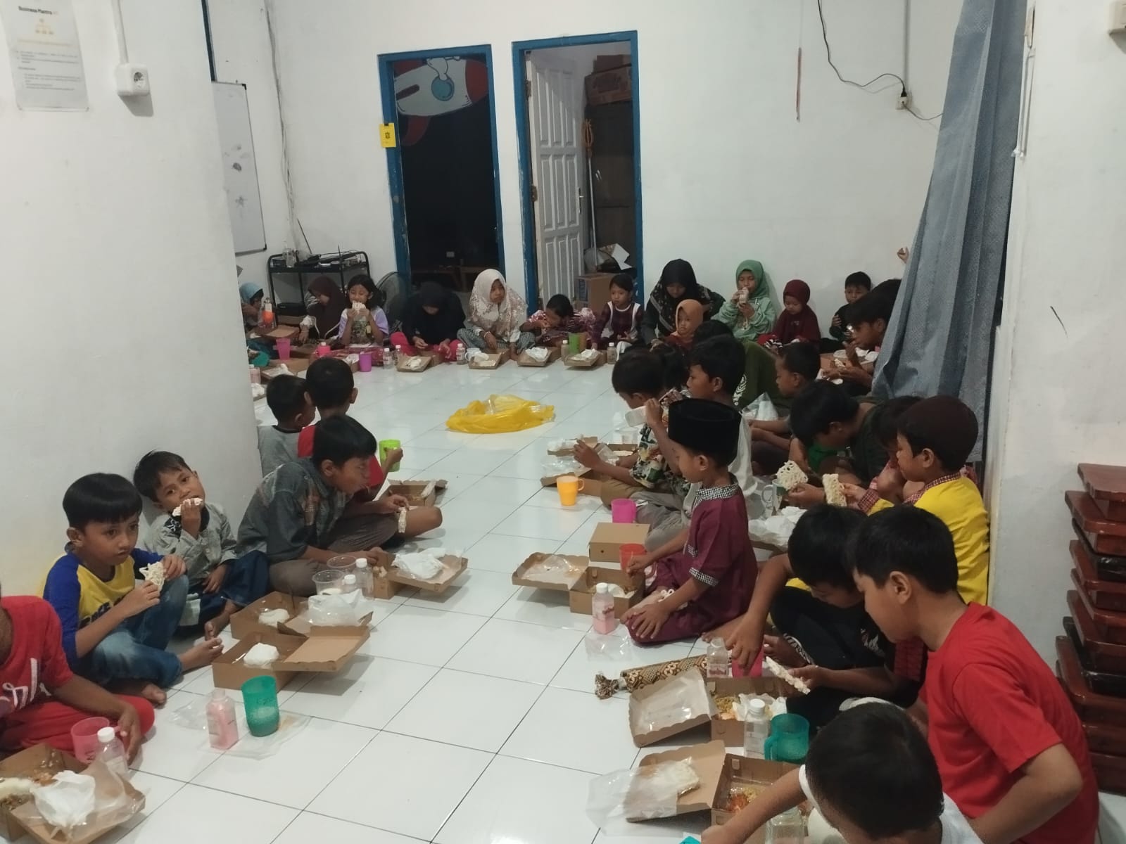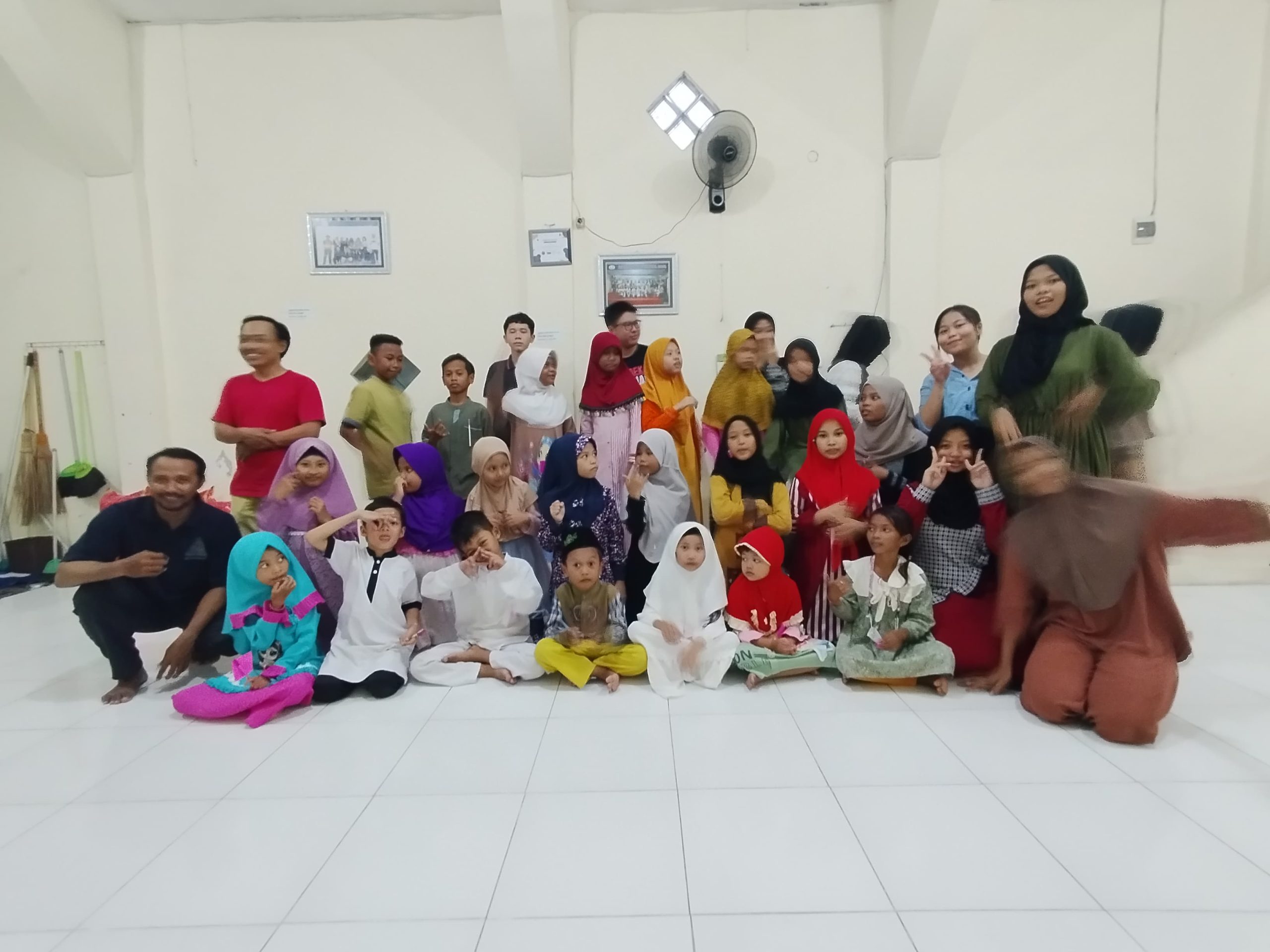 The event started at 4. p.m. with playing games together with the students of the state university Surabaya (Unesa). And then they learn about the importance of fasting month and how to keep the world clean by caring for the environment. After learning, the activity closed with a quiz and took pictures together. After the call to prayer, the activity ended with breaking the fast together The children were very happy.