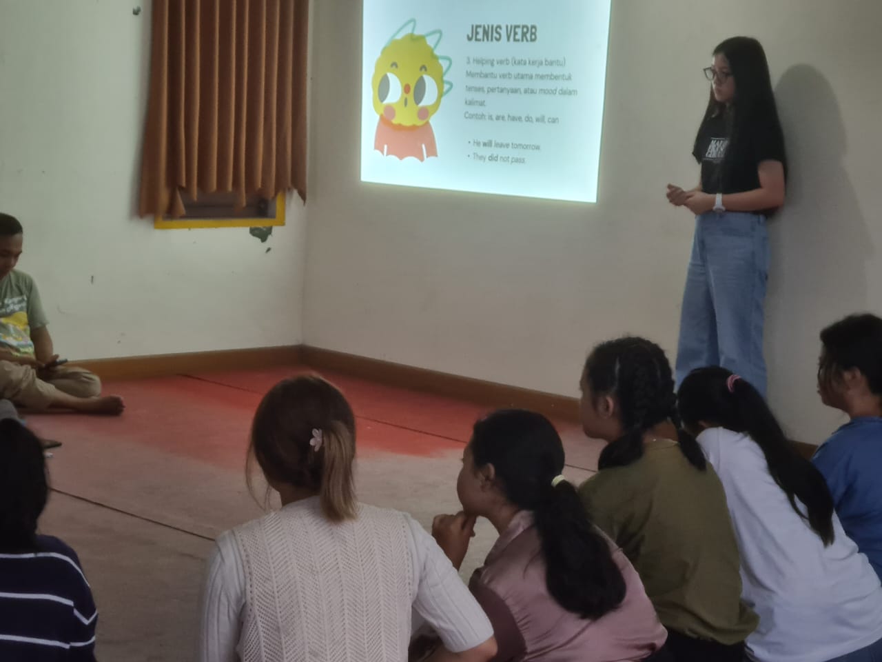 Foto Elena Sedang Memberikan Materi Bahasa Inggris